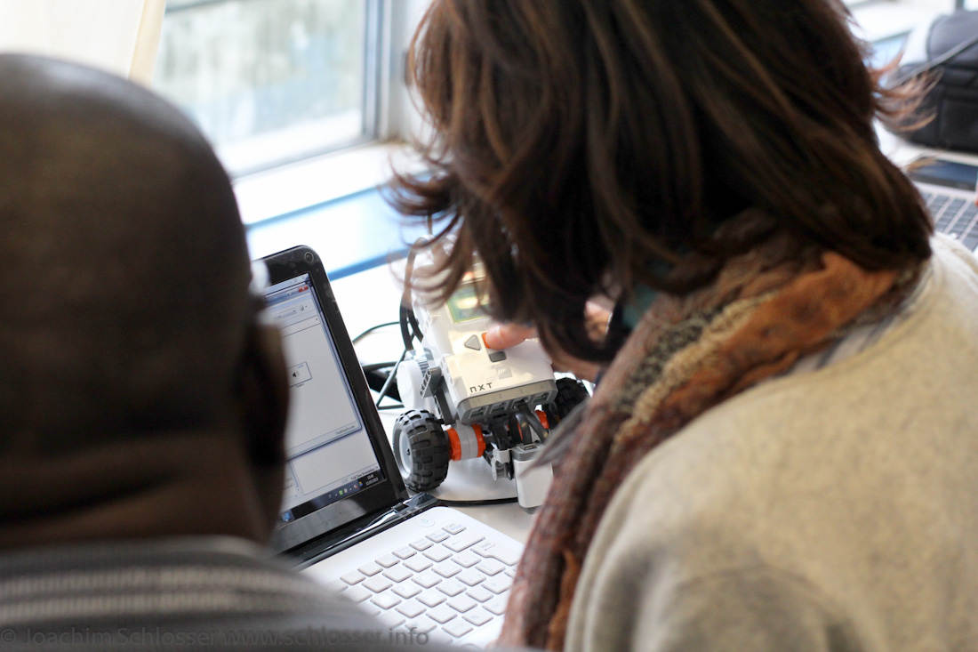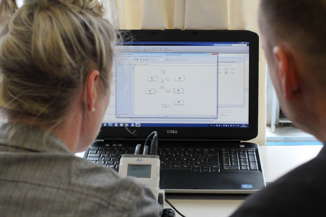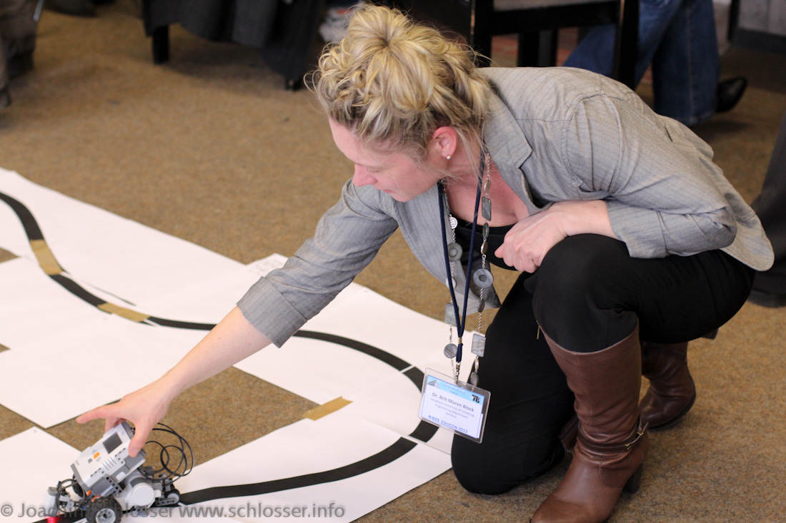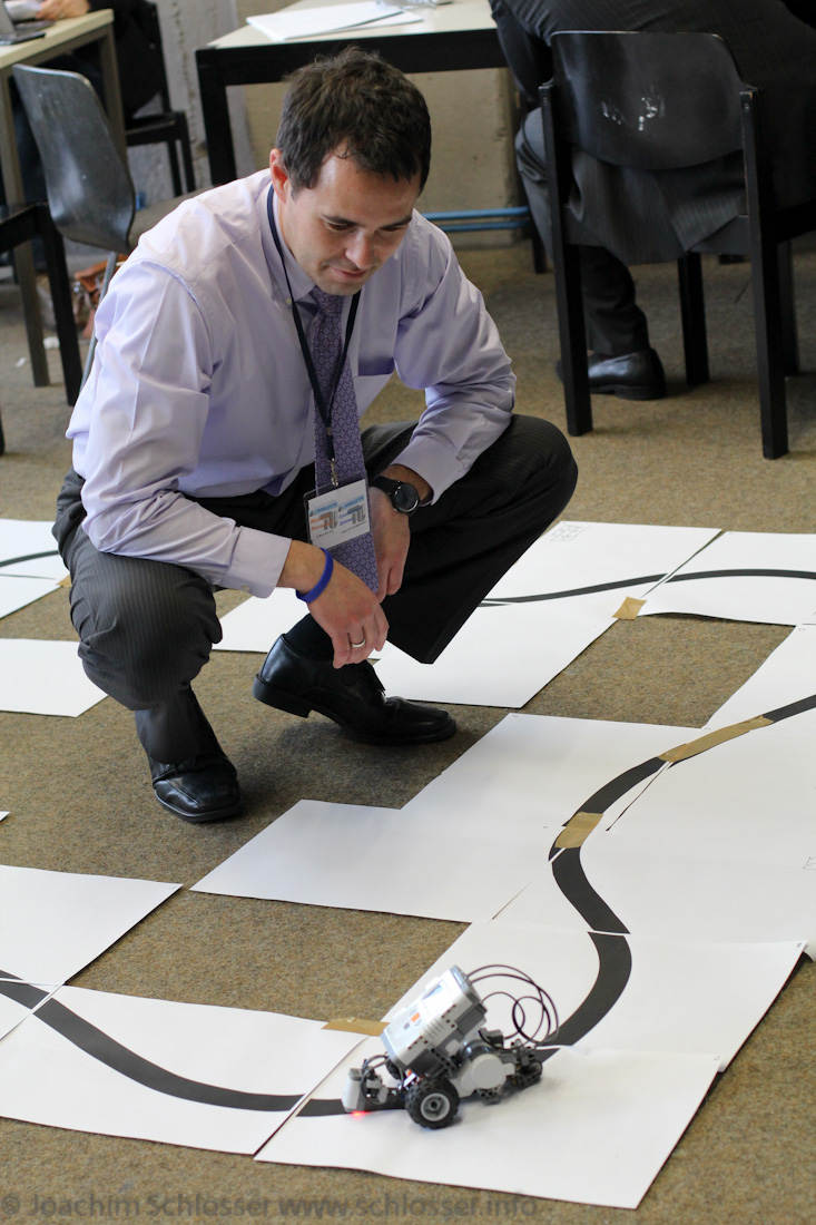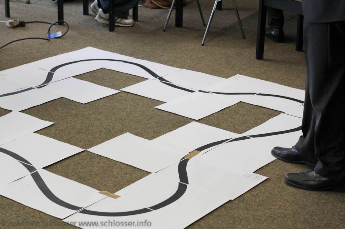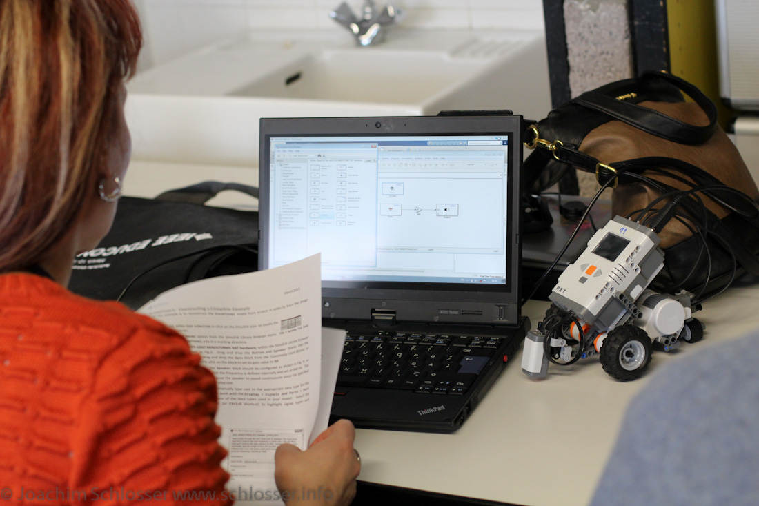 Inhalt des Workshops war, ein LEGO-Fahrzeug mit Simulink dazu zu bringen, eine schwarze Linie auf dem Boden nachzuverfolgen. Und siehe da, nach zwei Stunden waren alle soweit. Und lächelnde Professoren, meine lieben Studenten, das ist ein gutes Zeichen.